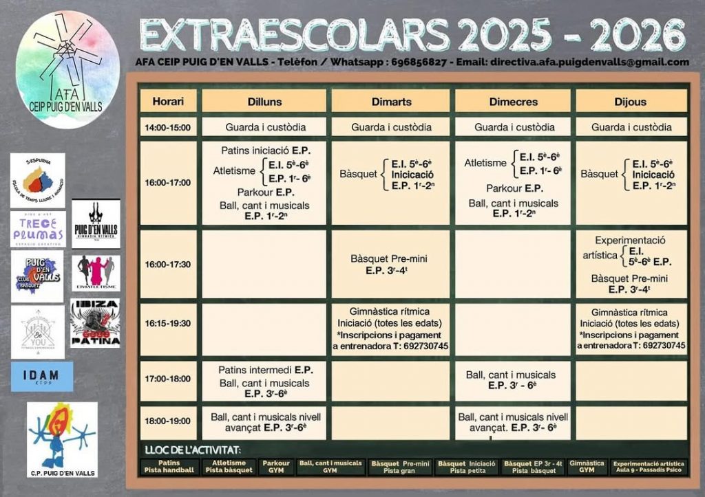 La AFA del colegio de Puig d’ en Valls ya ha publicado sus extraescolares para este nuevo curso 2025/2026