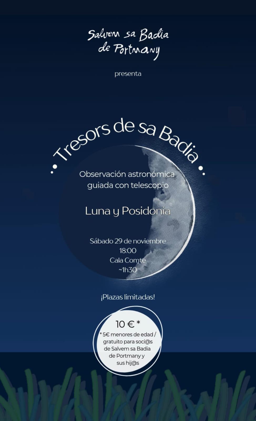 El sábado 29 de Noviembre de 2025 a las 18:00 en Cala Conta Observación astronómica, guiada por telescopio Duración aproximada
