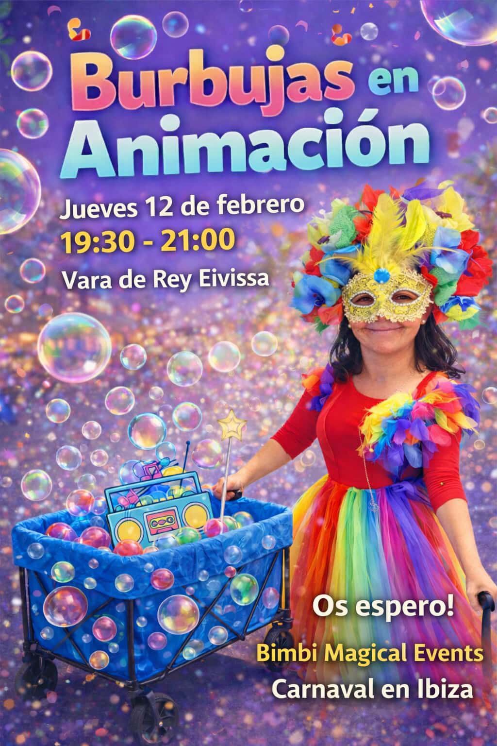 El próximo Jueves 12 de Febrero de 19:30 a 21h no te puedes perder el show de Burbujas en Vara de Rey de la mano de Bimbi Magical Events