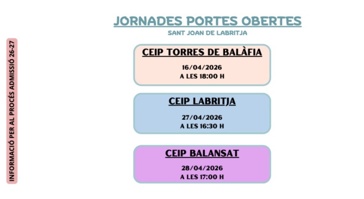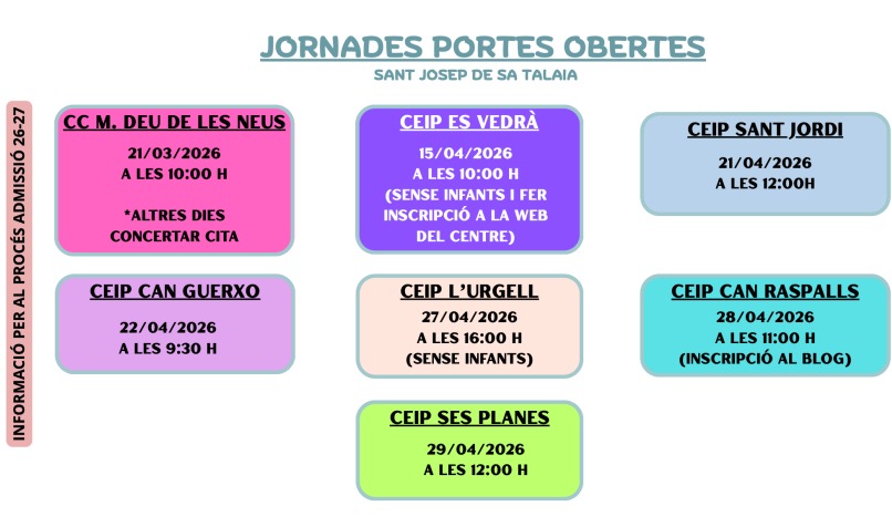 El próximo 25 de Marzo a las 16h tendrá lugar la jornada de puertas abiertas para la Escoleta de Vila