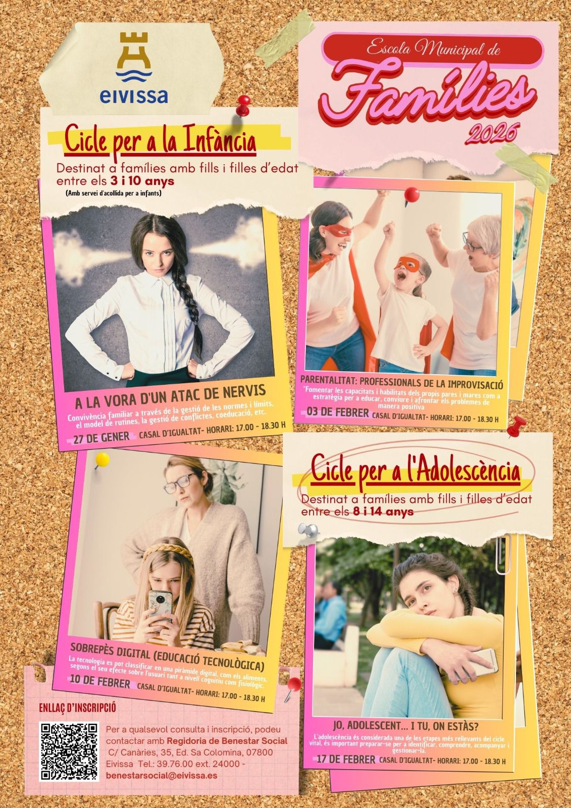 El próximo 17 de Febrero a las 17h en el Casal d’ Igualtat d’ Eivissa no te puedes perder el taller para padres y madres por la «Escola Municipal de Families 2026» el taller de «Ciclo para la Adolescencia» destinado a familias con hijos/as de edad entre los 8 y los 14 años. «Jo adolescent… i tú, on estàs?»