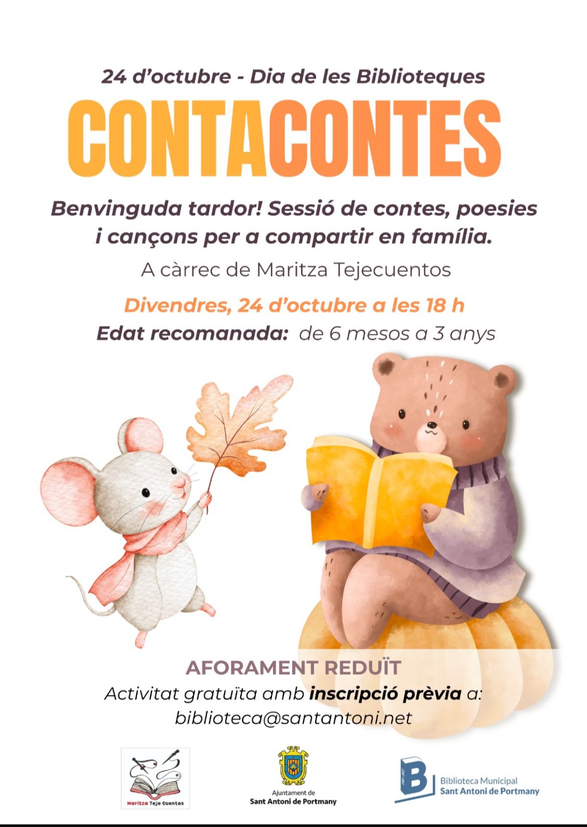 El próximo Viernes 24 de Octurbre a las 18h te espera un cuento para niños y niñas de 6 meses a 3 años en la Biblioteca de Sant Antoni.