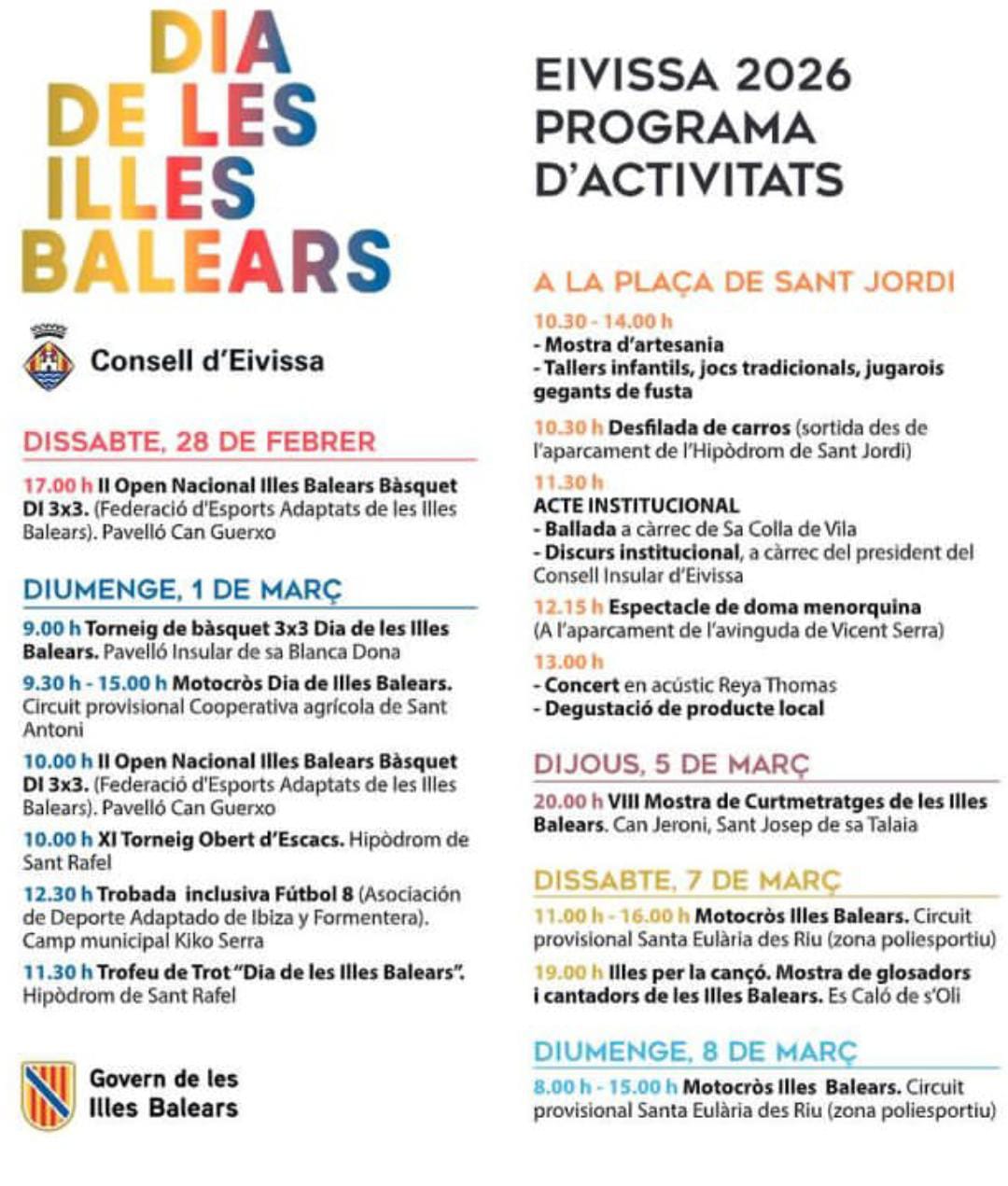 El domingo 1 de marzo de 2026 Día de las Islas Baleares