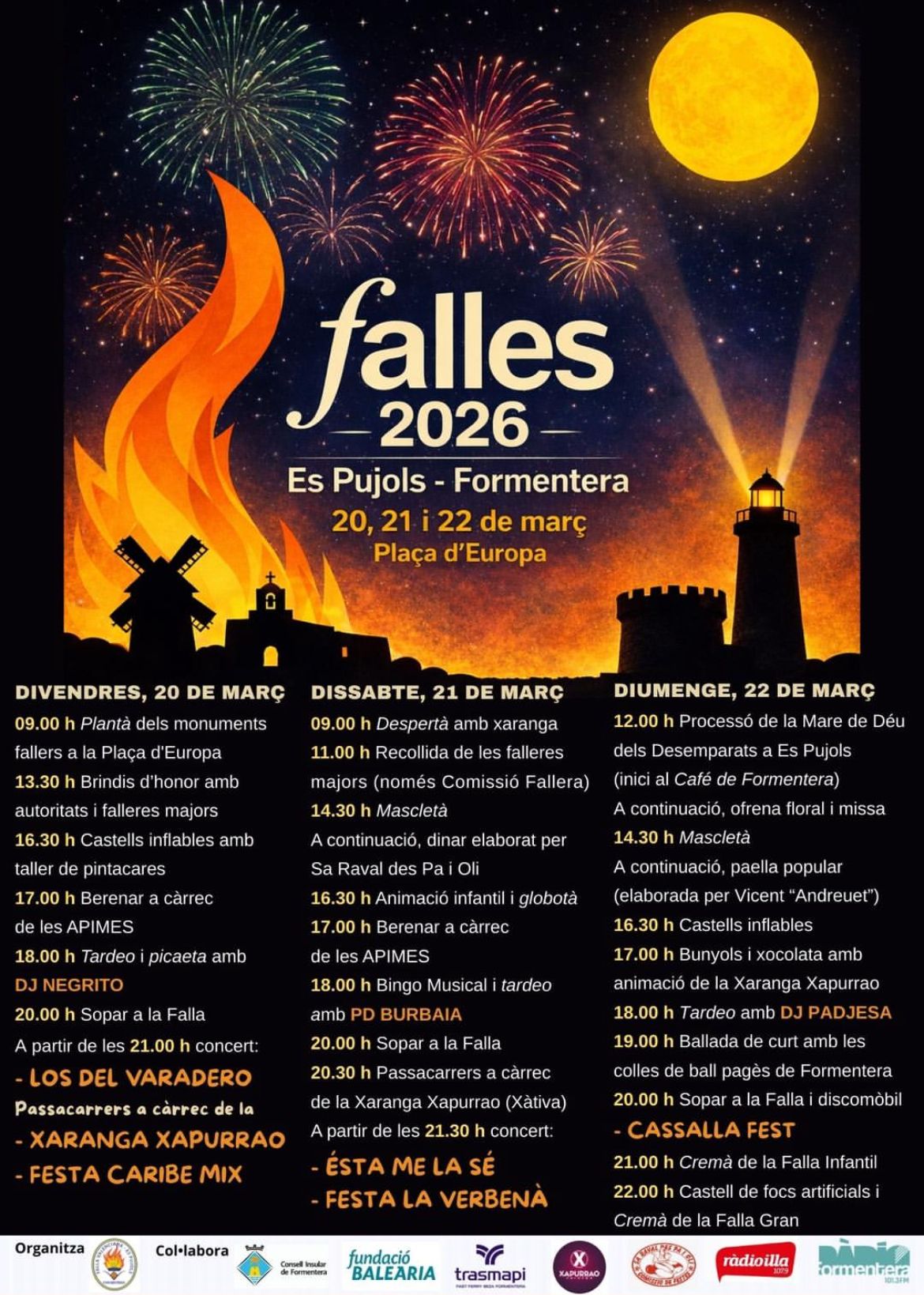 Del Viernes 20 al domingo 22 de Marzo de 2026 en la Plaza de Europa, Formentera Fallas Es Pujols Viernes