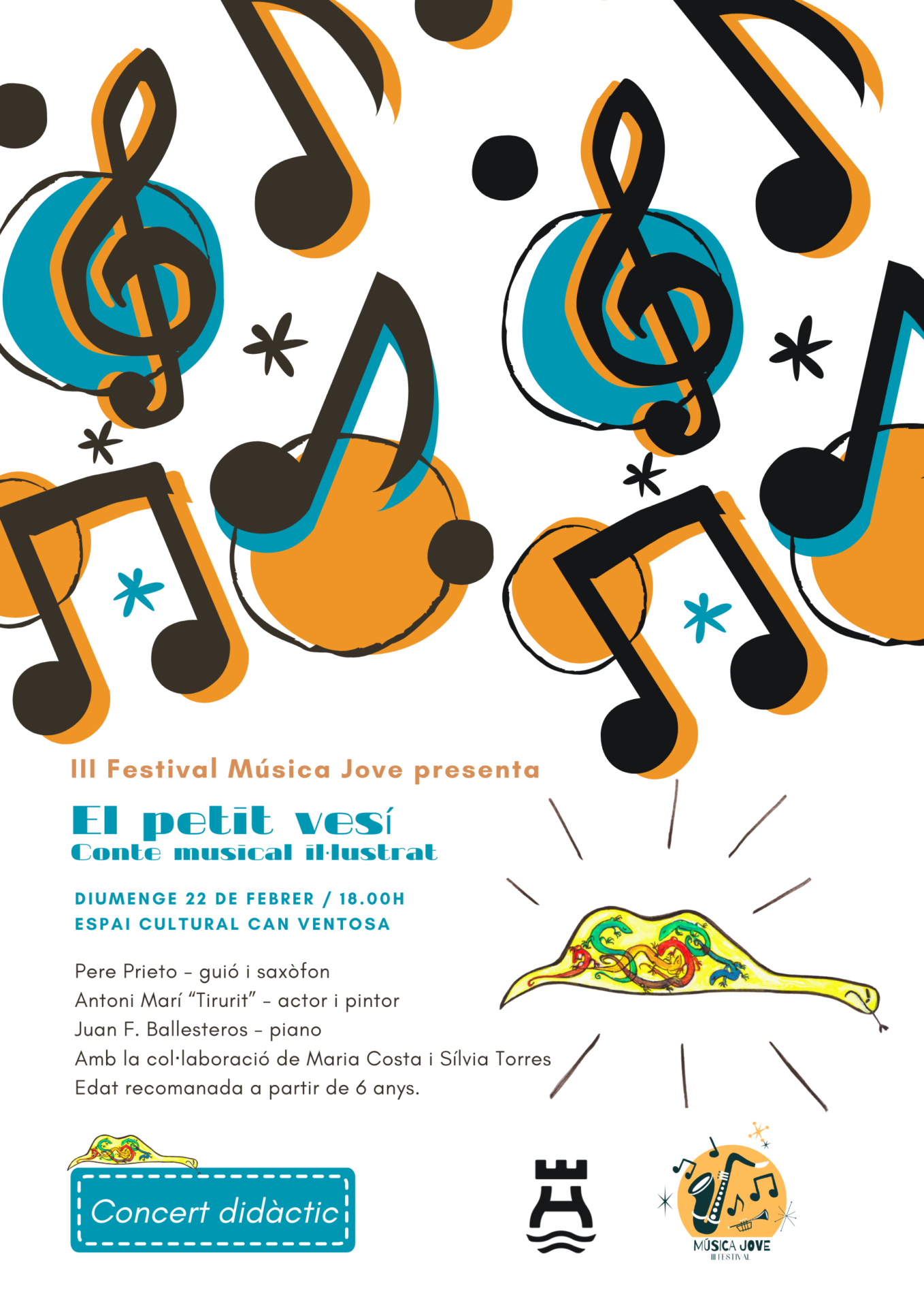 18:00 Cuento Musical Ilustrado, El petit vesí 22 febrero 18:00 CET Cuento Musical Ilustrado, El petit vesí El próximo Domingo 22 de Febrero a las 18h se organiza un cuenta cuentos musical ilustrado para niños y niñas