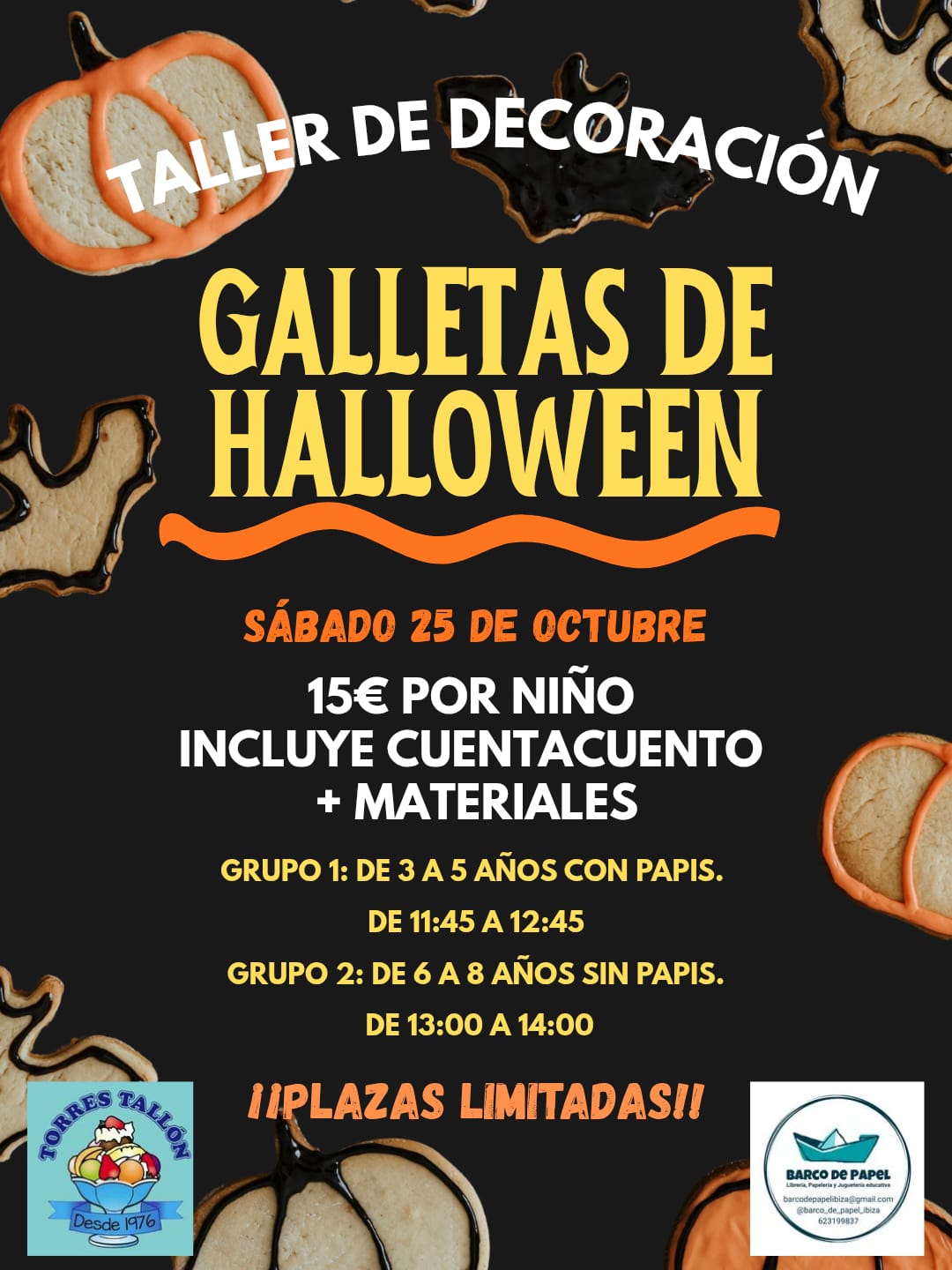 Primero, dejaremos volar la imaginación con una historia encantadora, y después… ¡manos a la masa! Decoraremos deliciosas galletas con motivos terroríficamente divertidos.
