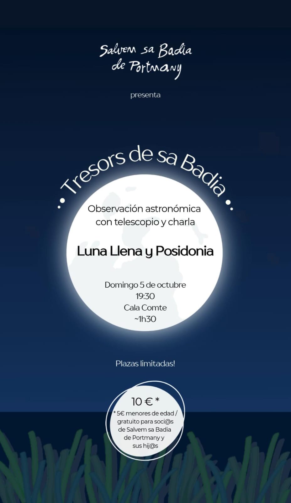 El domingo 5 de octubre de 2025 a las 19:30 en Cala Conta Luna llena y posidonia Estas interesado en