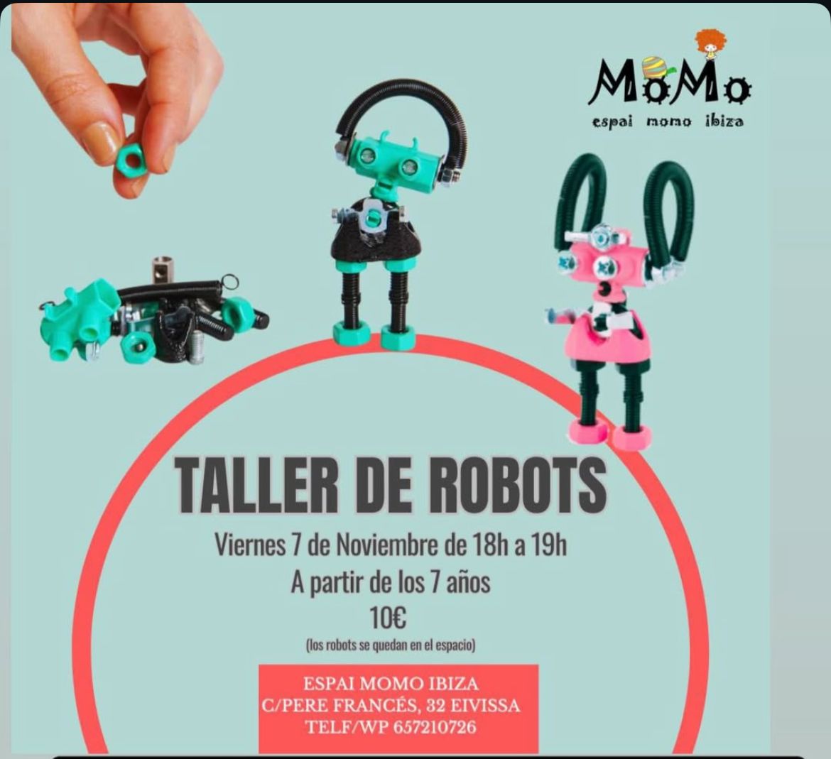 El Viernes 7 de Noviembre de 2025 de 18:00 a 19:00 en Espai Momo Ibiza Taller de robots A partir