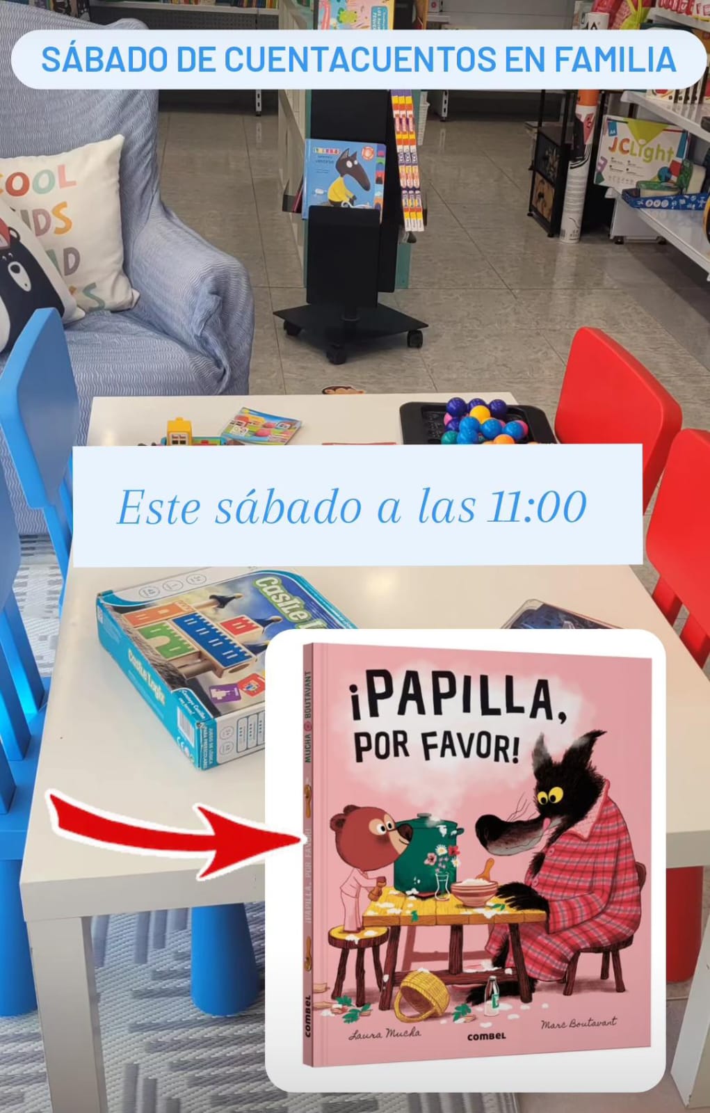 El Sábado 22 de Noviembre de 2025 a las 11:00 en el Barco de Papel Cuentacuentos en Familia "Papilla, por