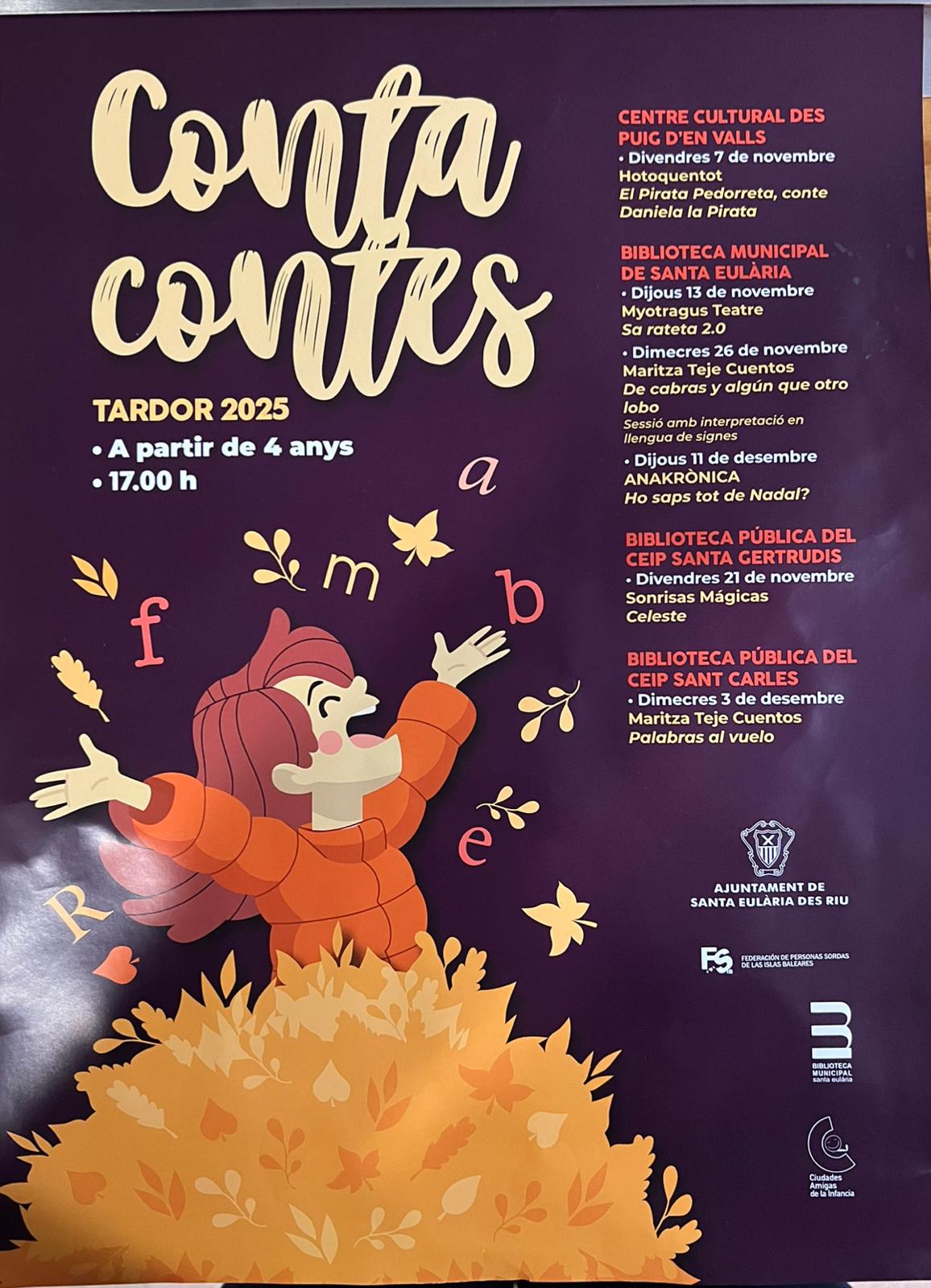 El Viernes 7 de Noviembre de 2025 a las 17:00 en el Centro Cultural de Puig d'en Valls Cuentacuentos, el
