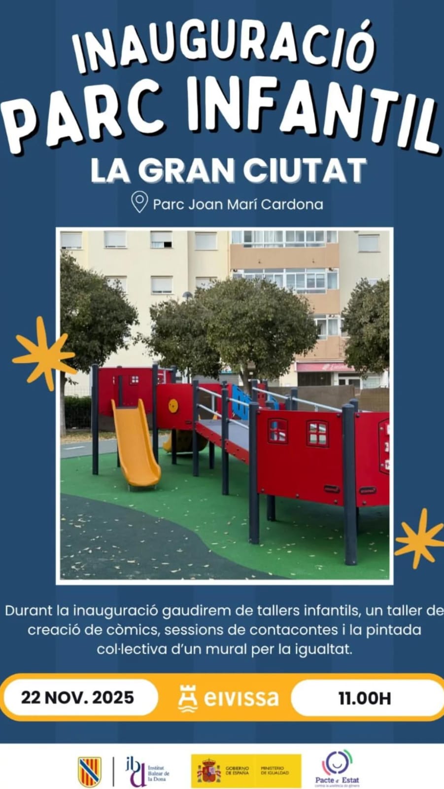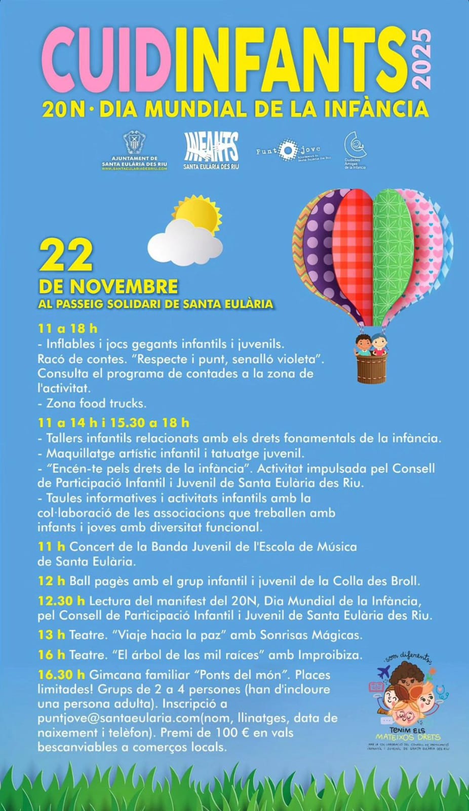 El sábado 22 de Noviembre de 2025 en el Passeig Solidari Cuidainfants 11:00 a 18:00 hinchables y juegos gigantes y