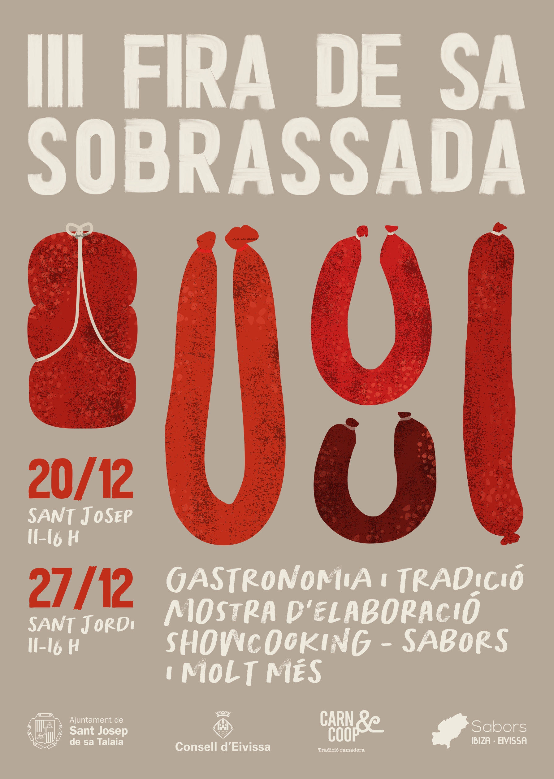 El sábado 20 de diciembre de 2025 en Sant Josep SUSPEDIDO POR MAL TIEMPO III Feria de la Sobrasada. 11.00