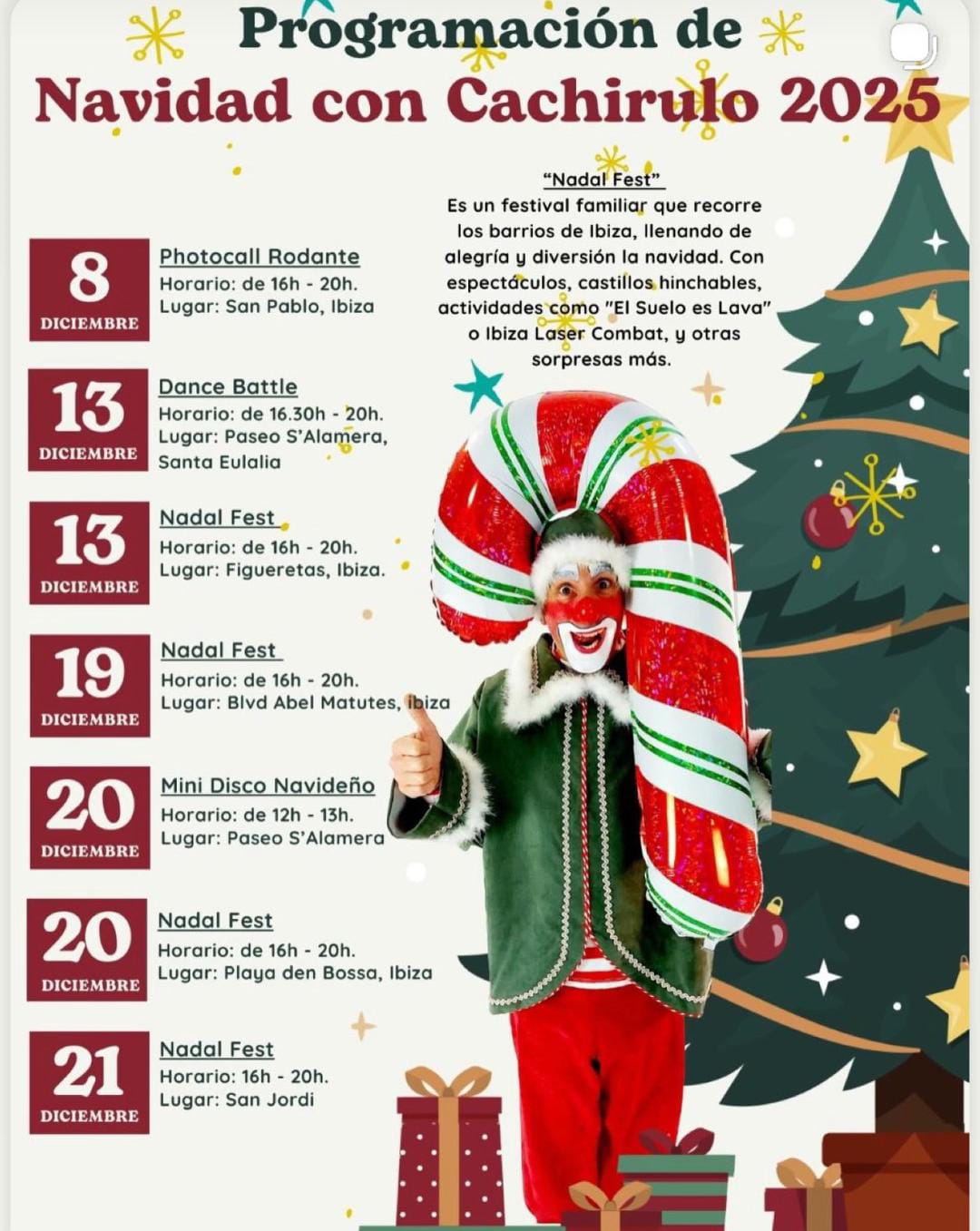 El miércoles 24 de diciembre de 2025 de Ibiza Desfile de Papá Noel y su mágica comitiva 10:30 h. Recorrido: Puerto