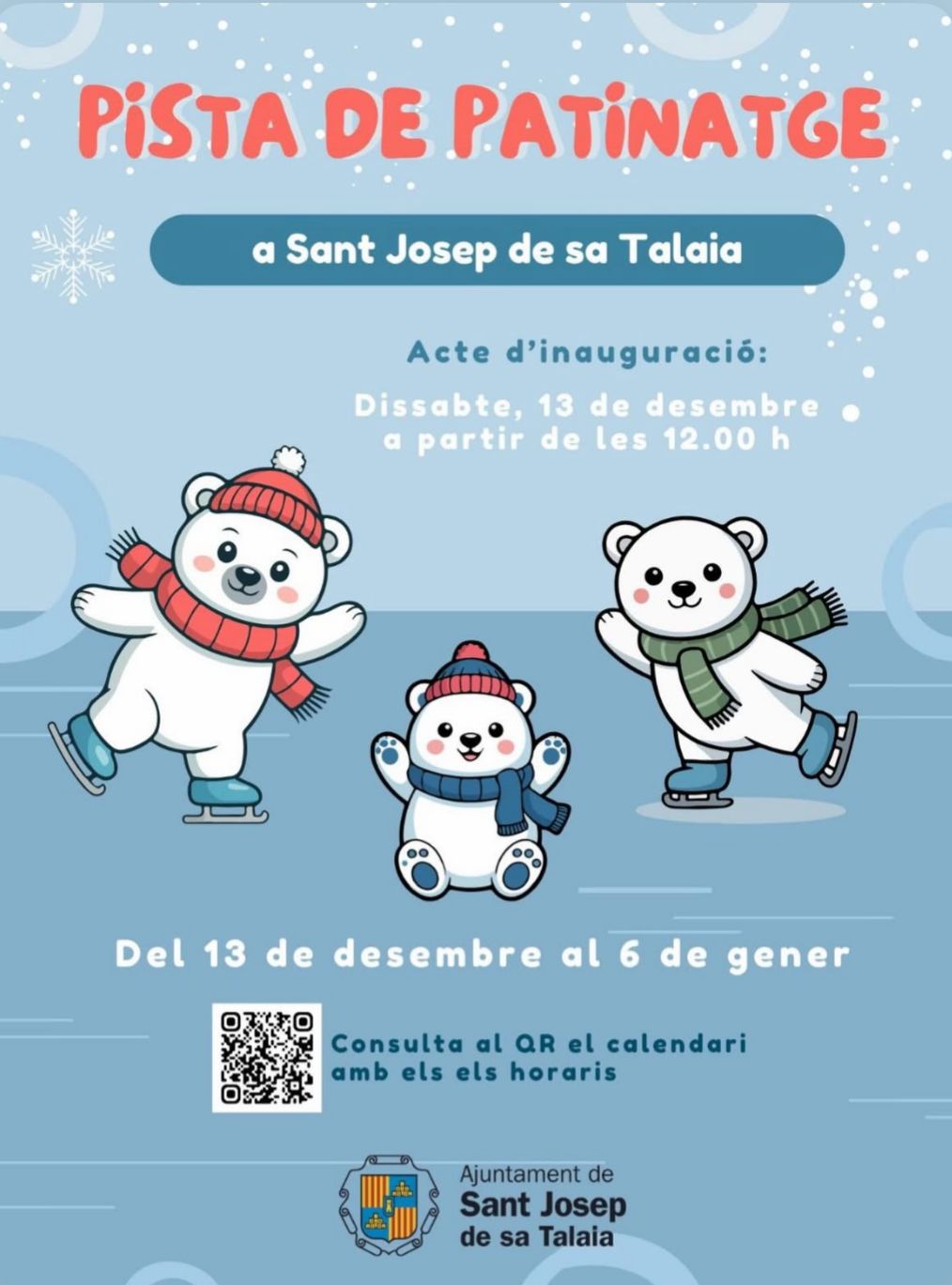 Del 13 de Diciembre al 6 de enero en Sant Josep Pista de Hielo *Es obligatorio el uso de guantes