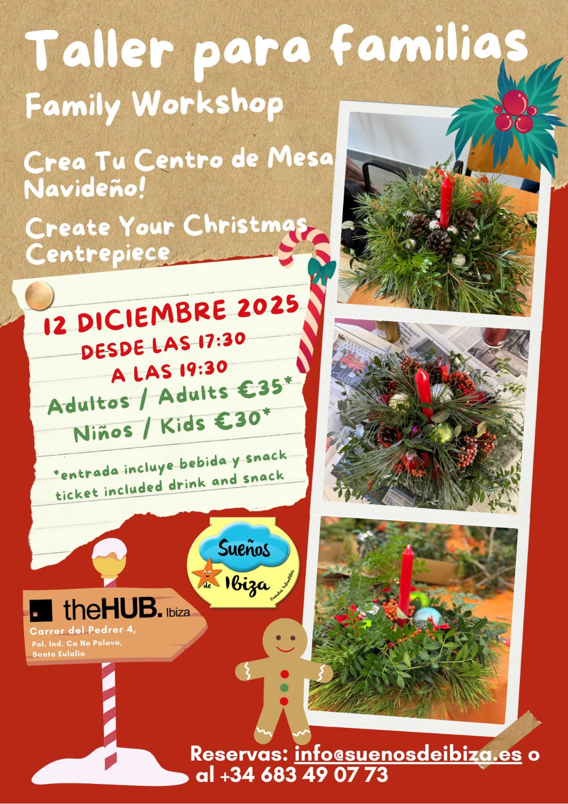 El Viernes 12 de Diciembre de 2025 en The Hub 17:00 a 19:30 Crea tu propio centro de mesa a