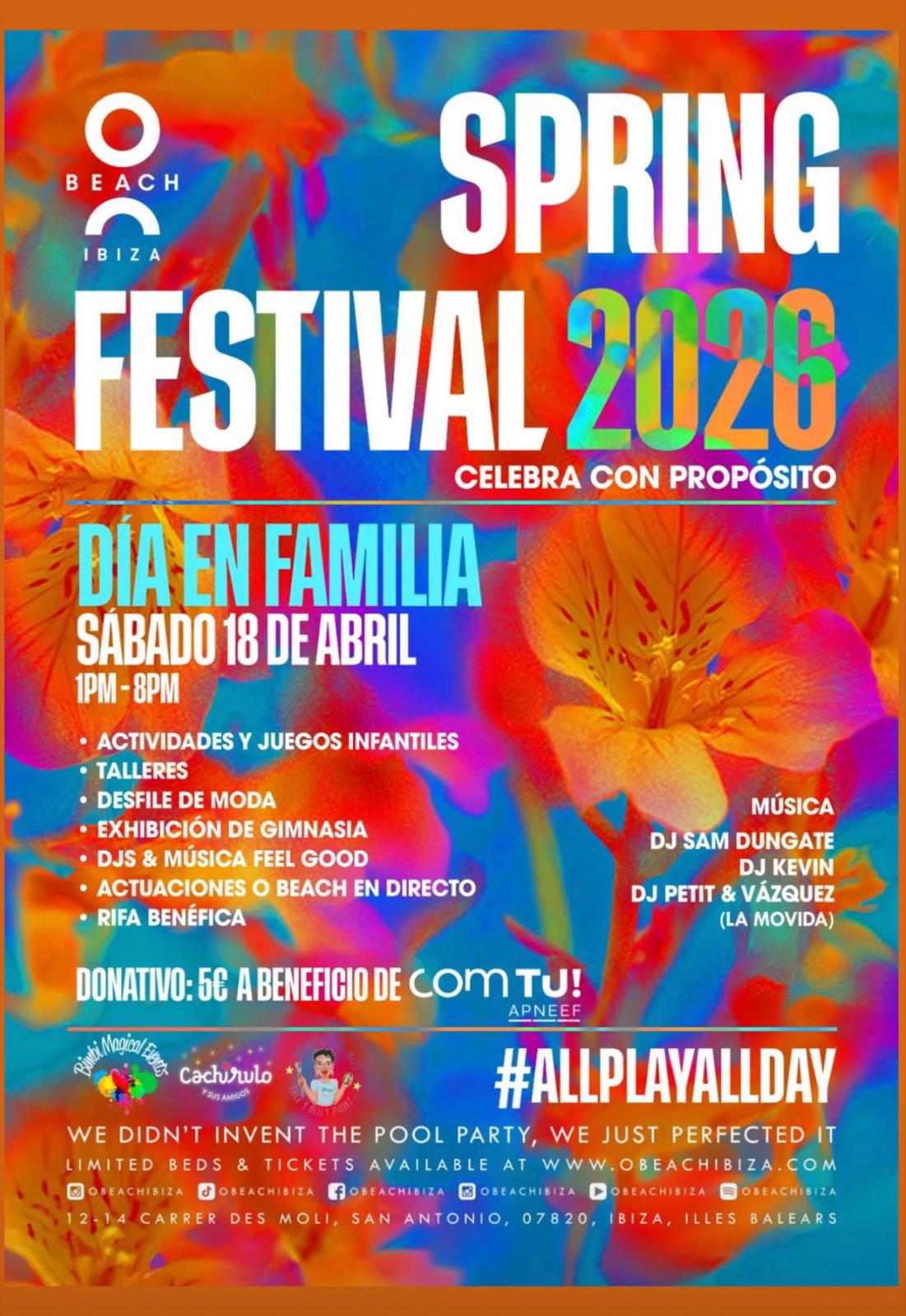 El Sábado 18 de Abril de 2026 de 13:00 a 20:00 en Obeach Ibiza, Sant Antonio Spring Festival 2026, Día