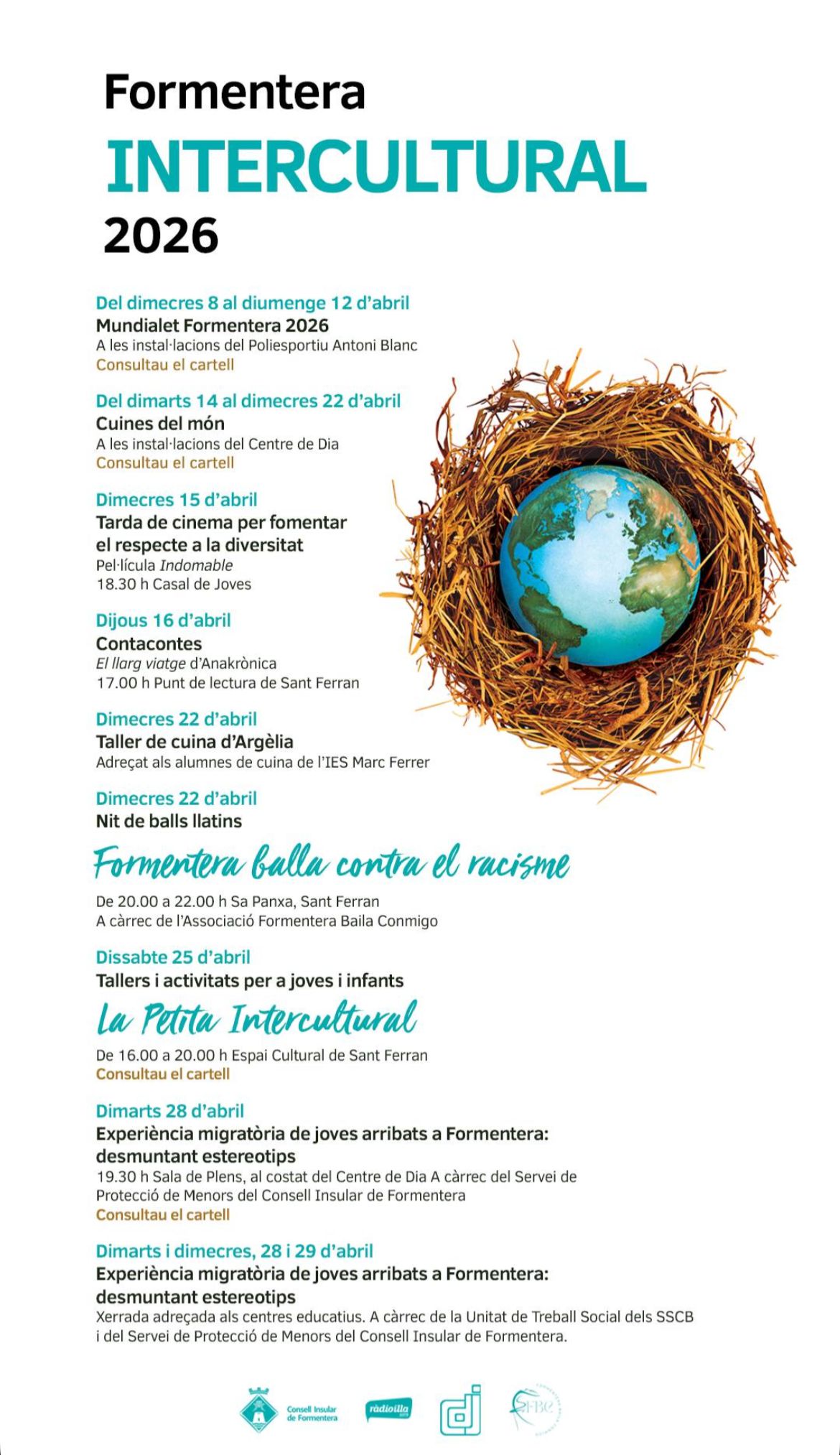 El Sábado 25 de Abril de 2026 de 16:00 a 20:00 en el Espai Cultural de Sant Ferran, Formentera La |
