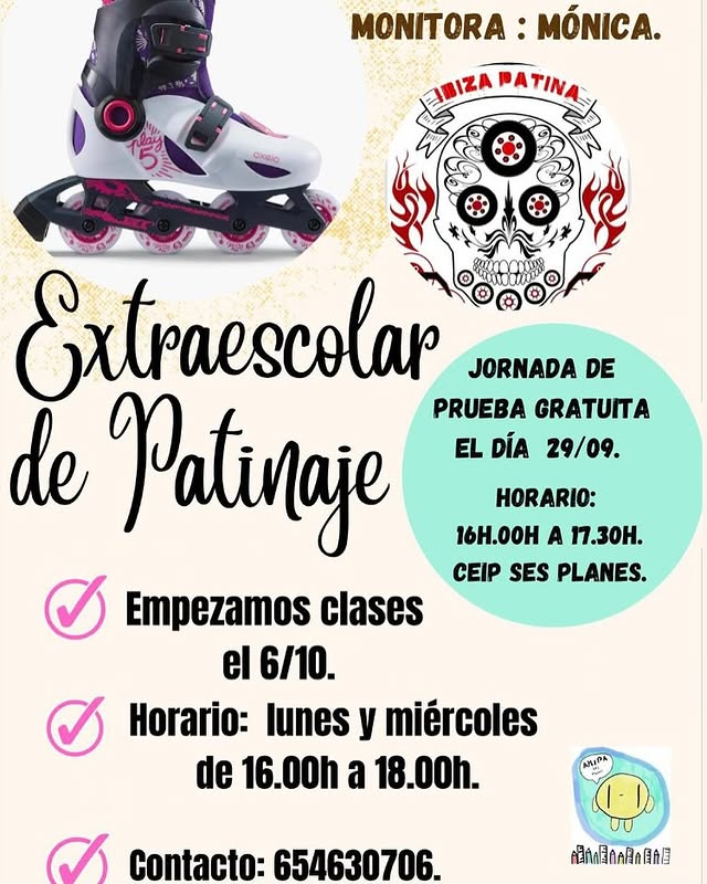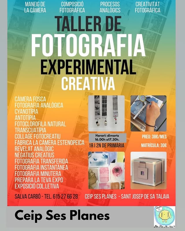 Inglés, fotografía, pintura, patinaje, gimnasia rítmica y teatro Contacta con la AMIPA para inscribirse, puedes encontrarlas en instagram como @amipaceipsesplanes o en el contacto que aparece en cada imagen.