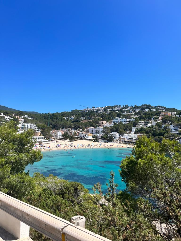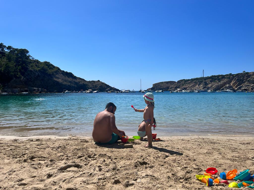 Cala de fina arena a unos 10 minutos desde San José, cuenta con un ambiente tranquilo y familiar rodeada de unos preciosos acantilados que hacen de esta playa una piscina natural y casi sin oleaje.