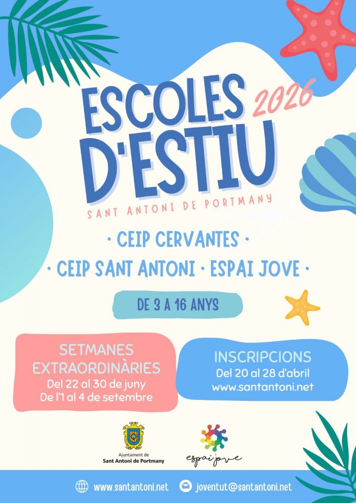 El Ayuntamiento de San Antonio ha publicado su propuesta para Escuelas de Verano para este año 2026 para niños y niñas de 3 a 16 años.