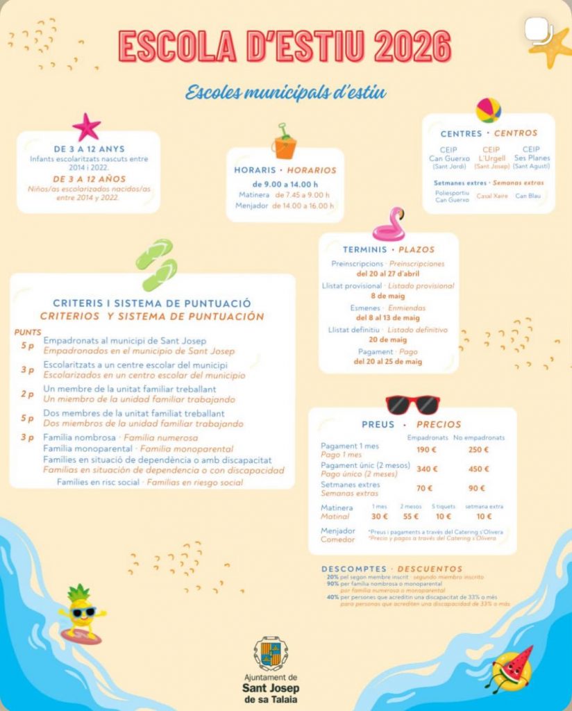 Escuela de Verano 2026, Ayuntamiento de Sant Josep