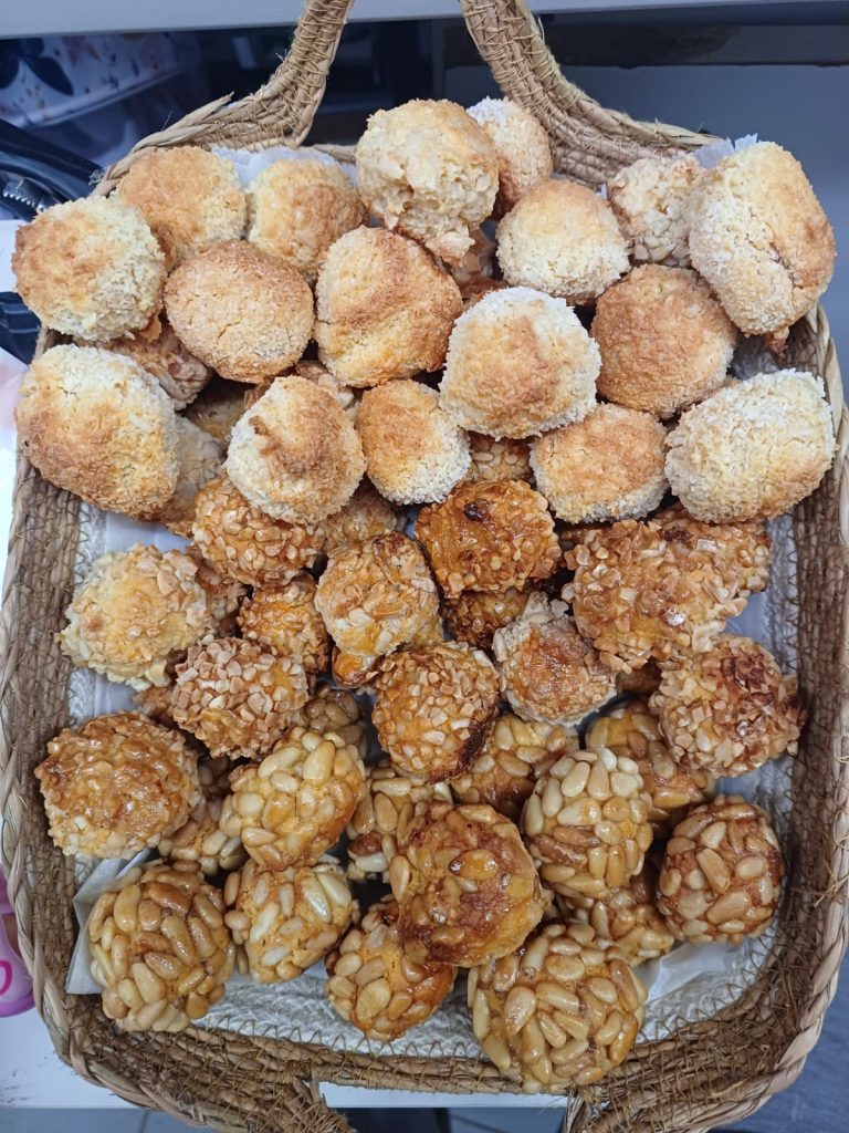 5. En un plato mezclamos los piñones con la yema de huevo y cubrimos las bolitas de piñones.