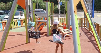 Encontramos este coqueto parque en el centro del pueblo de San Miguel, cuenta con dos columpios sencillos, dos balancines, una torre con dos toboganes, tiene diferentes escaleras para subir y para pasar de un lado a otro encontramos dos pasarelas para hacer equilibrio, una muy fina con cuerda para sujetarse y otra mas gruesa y con tela de araña a los lados