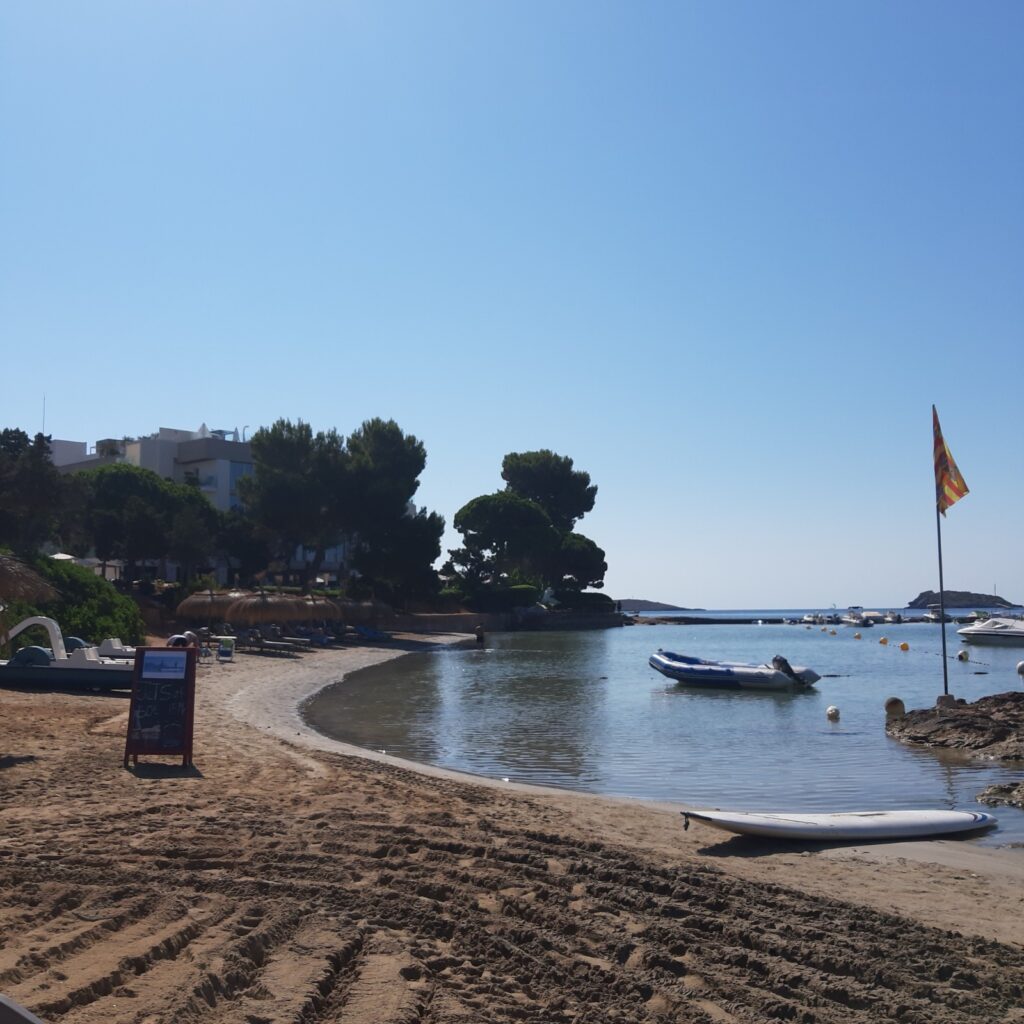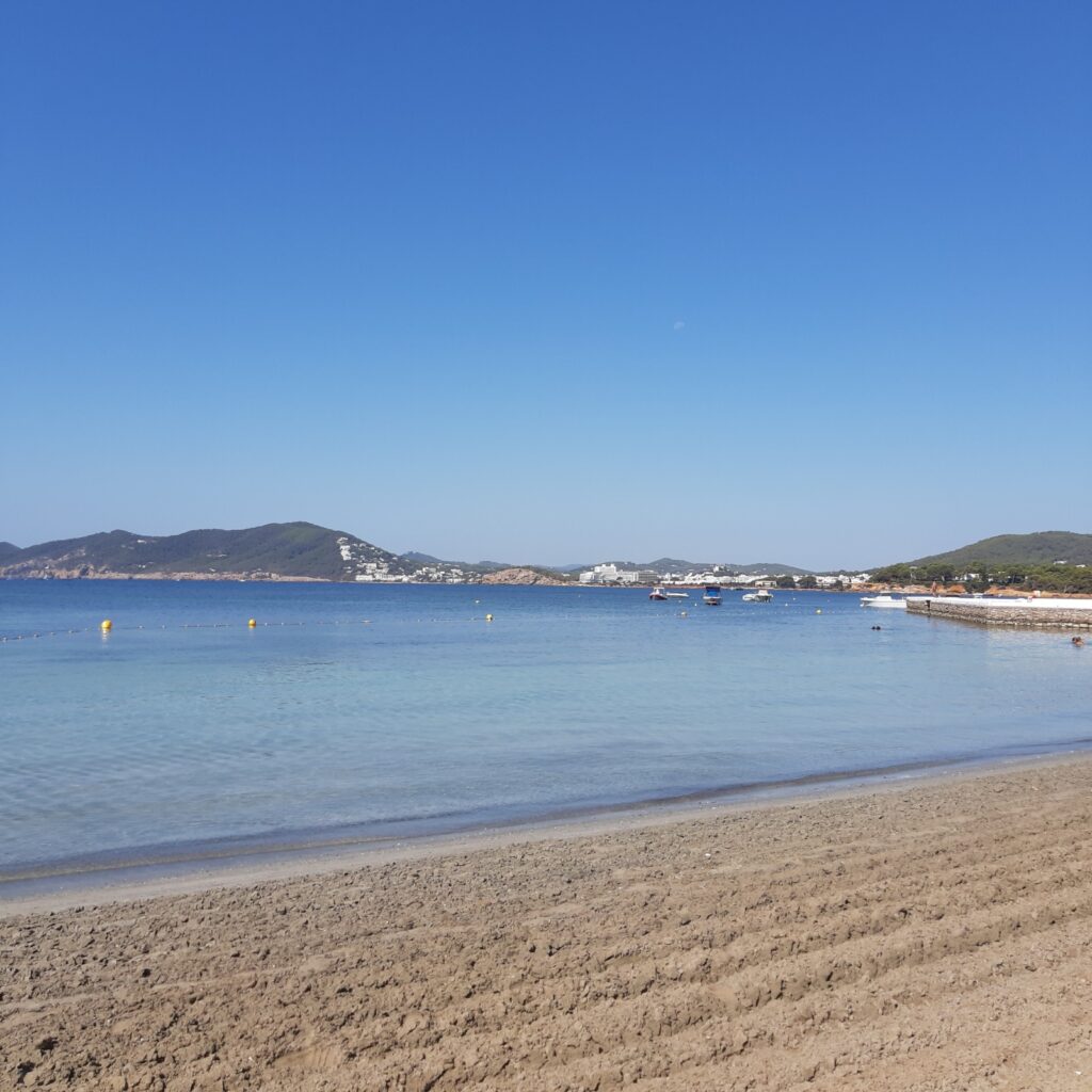 Encontramos esta Playa en Santa Eulária con fácil acceso, aguas cristalinas (la mayor parte del años) y arena fina aunque la entrada al agua cuenta con pequeñas piedras y pequeñas conchas que pueden dificultar el paso a los pies más sensibles.